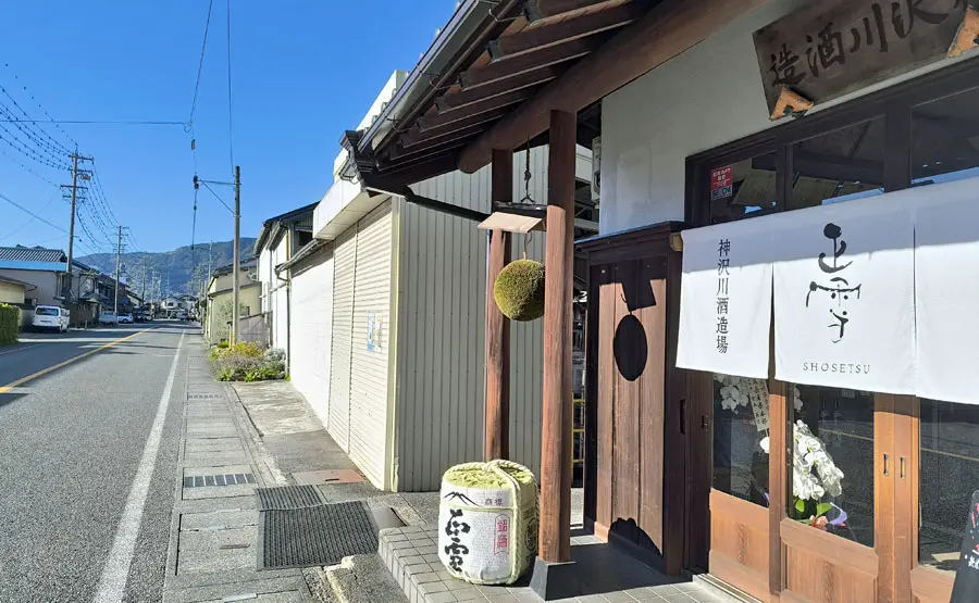 東名高速の下を潜り、街道は神沢交差点で県道396号を離れて左へと進む。 やがて小さな酒玉を吊るした神沢川酒造場。 清酒の銘柄は「正雪」。